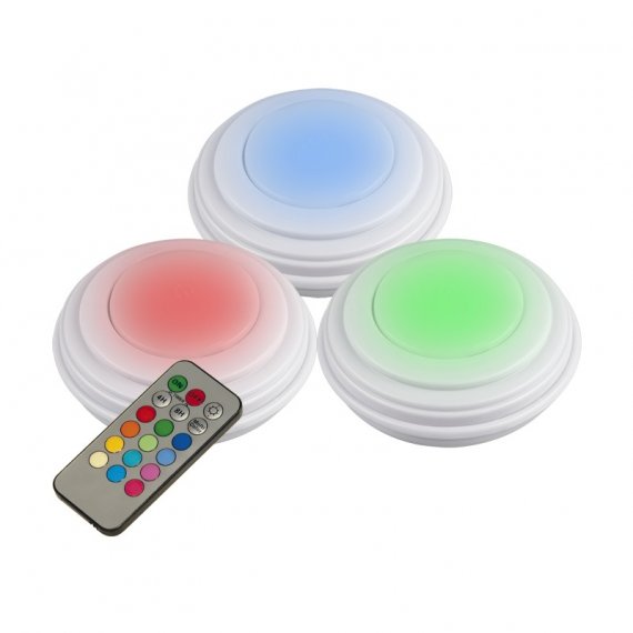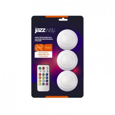 Представляем вашему вниманию беспроводные светильники JAZZway TS5-RGBx3, оснащенные пультом дистанционного управления. Эти фонари-светильники идеально подойдут для создания дополнительного или декоративного освещения в вашем доме. Их можно легко установить в спальной или детской комнате, гардеробной, кухонном или стенном шкафу, на барной стойке. С помощью пульта ДУ вы сможете включать/выключать светильники и выбирать нужный режим работы из пяти доступных вариантов цветного свечения.Набор мультицветных фонарей-светильников пушлайт с пультом ДУ Предназначены для использования в качестве дополнительного или декоративного освещения. Можно устанавливать в спальных и детских комнатах, гардеробных, кухонных и стенных шкафах, на барных стойках. Включение / выключение / переключение режимов происходит нажатием на корпус (5 вариантов цветного свечения. Пульт ДУ дублирует функции нажатия на корпус и добавляет еще несколько режимов работы (таймер на выключение, 12 цветных вариантов свечения, режим автоматической смены цветности и др.) Яркость белого свечения 60 люмен, цветовая температура 6500 – 7000 К Дальность действия пульта ДУ 5 метров, угол 160 градусов. В комплект поставки входит лент-липучка, которая позволяет закреплять светильник на гладких поверхностях, пульт ДУ укомплектован батарейками CR2025.