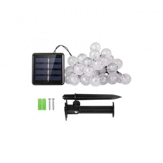Светодиодный светильник-гирлянда "КРИСТАЛЛИЧЕСКИЕ ШАРИКИ" с солнечной батареей.. Предназначен для декоративной подсветки кустарников, альпийских горок, террас, веранд на садовых и дачных участках, балконов и т.п.. Автоматическое включение/выключение при наступлении темного/светлого времени суток (датчик освещенности). 8 режимов работы: комбинированный, волнообразный, последовательный, перетекающий, бегущая вспышка, затухающий, мерцающий, постоянный.. Время непрерывной работы при полностью заряженном аккумуляторе 8 часов.. Светильник можно устанавливать в грунт и на вертикальную поверхность. Крепеж (два самореза и дюбеля) входит в комплект поставки.