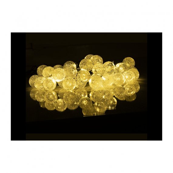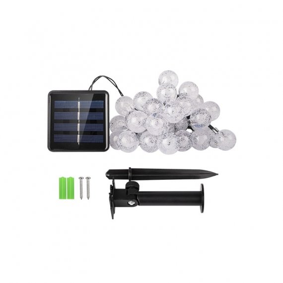 Светодиодный светильник-гирлянда "КРИСТАЛЛИЧЕСКИЕ ШАРИКИ" с солнечной батареей.. Предназначен для декоративной подсветки кустарников, альпийских горок, террас, веранд на садовых и дачных участках, балконов и т.п.. Автоматическое включение/выключение при наступлении темного/светлого времени суток (датчик освещенности). 8 режимов работы: комбинированный, волнообразный, последовательный, перетекающий, бегущая вспышка, затухающий, мерцающий, постоянный.. Время непрерывной работы при полностью заряженном аккумуляторе 8 часов.. Светильник можно устанавливать в грунт и на вертикальную поверхность. Крепеж (два самореза и дюбеля) входит в комплект поставки.