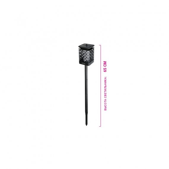 Светодиодный ландшафтный светильник на солнечной батарее.. Предназначен для декоративной подсветки садовых и дачных участков, веранд, беседок, балконов.. Богатая комплектация светильника позволяет применять 5 вариантов установки:. В грунт (традиционный вариант установки с колышком),. На стол (не требует дополнительного крепежа). Подвешивание с помощью прищепки "крокодила".. На твердую горизонтальную поверхность, например настил на террасе (фиксация с помощью саморезов).. На вертикальную поверхность, например стена дома или забор (жесткая фиксация).. . Время работы при полностью заряженном аккумуляторе 8 часов.. Время полного заряда аккумулятора: 6-8 часов.. Высота светильника в собранном виде с колышком = 65 см.