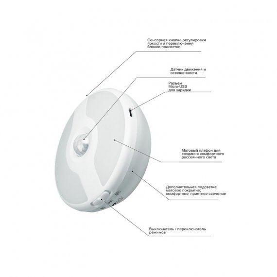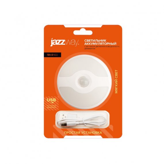 Представляем вам беспроводной светильник JAZZway TS8-L12-Accu с PIR датчиком. Этот светильник идеально подойдет для установки в гардеробных, стенных шкафах, кладовках и жилых помещениях благодаря своей беспроводной конструкции. Он автоматически включается в темноте при обнаружении движения и выключается через 25 секунд.Cветильник TS8-L12-Accu автоматически включается в темноте при появлении движущегося объекта и выключается через 25 секунд. Дистанция срабатывания датчика до 5 метров. Светильник не требует прокладки проводов, что сильно облегчает его установку в гардеробных, стенных шкафах, кладовках и жилых помещениях. Выбор одной из двух световых поверхностей (фронтальная или фоновая), плавная регулировка яркости и матовое покрытие плафона позволят настроить комфортное свечение. Благодаря магнитному креплению светильник легко снимается для зарядки. Зарядка осуществляется от USB-порта (5 В). Продолжительность работы при полной зарядке от 1 недели до 3-х месяцев (зависит от частоты использования). В комплект поставки входит кабель для зарядки, лента-липучка для фиксации магнитного основания, инструкция по использованию на русском языке
