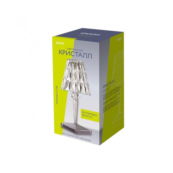 Светильник ФАZА CTL1-USB Настольный прозрачный кристалл - это светодиодный светильник КРИСТАЛЛ, который может использоваться как настольная лампа, ночник, декоративный или интерьерный светильник. Он обладает мощностью 3 Вт и световым потоком 120 лм. Цветовая температура составляет 2700-6500 K. Корпус выполнен из высококачественного акрила, степень защиты IP - IP20. Гарантия на товар - 1 год.Светодиодный светильник КРИСТАЛЛ прекрасно впишется в интерьер жилого помещения и ресторана.. Возможность плавной регулировки яркости и выбора цветовой температуры позволяет выбрать оптимальное свечение для гостиной, детской комнаты, спальной или лаунж зоны.. Настольная лампа, ночник, декоративный или интерьерный светильник – все зависит от Вашей фантазии.. В светильнике установлено 2 светодиода общей яркостью 120 Лм.. Корпус из высококачественного акрила с «огранкой» придает свечению блеск хрусталя.. Питание осуществляется через USB разъем.. Возможно подключение к сети 220 В через сетевой адаптер, к внешнему аккумулятору (power bank) или другому USB-порту (5В пост. тока, 2А).