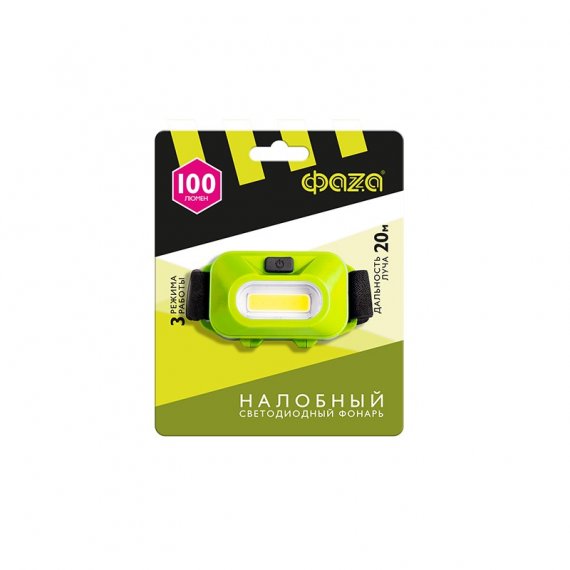 Артикул: Фонарь ФАZА H9-L1W-gn налобн. 1Вт COB, 3xAAA, зел.