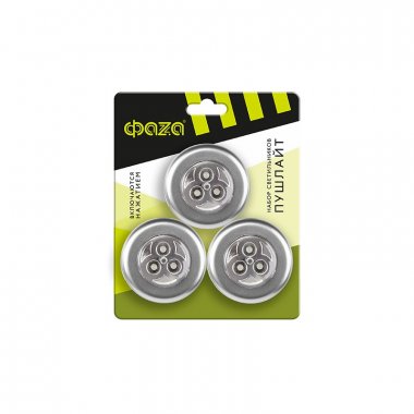 Универсальные фонари-светильники ПУШЛАЙТ (включается нажатием). Не требует прокладки проводов. Легко устанавливается на любой поверхности. Двусторонний скотч в комплекте. Работает от батареек 3 х ААА. Класс пылевлагозащиты IP20