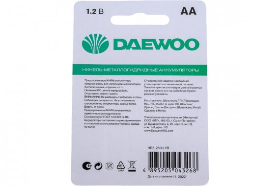 Технические характеристики DAEWOO AA (2500mAh) Ni-MH BL-2 5043268