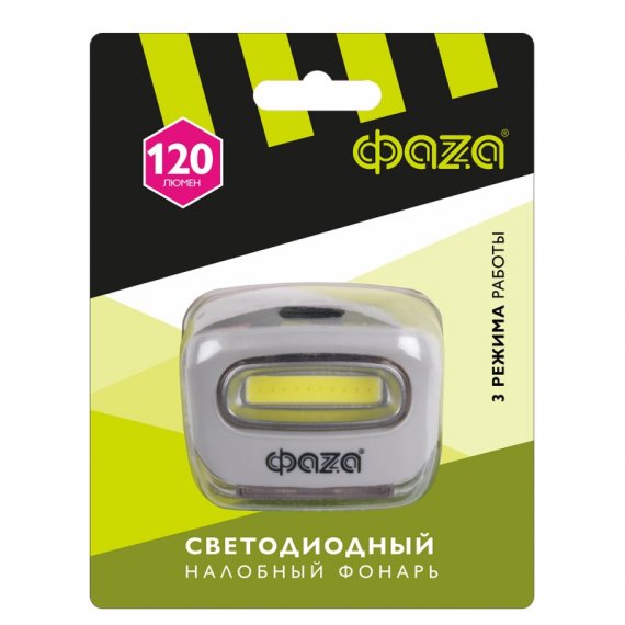 Артикул: Фонарь ФАZА H5-L2W-gy налобн. 2Вт COB, 3xAAA, сер.