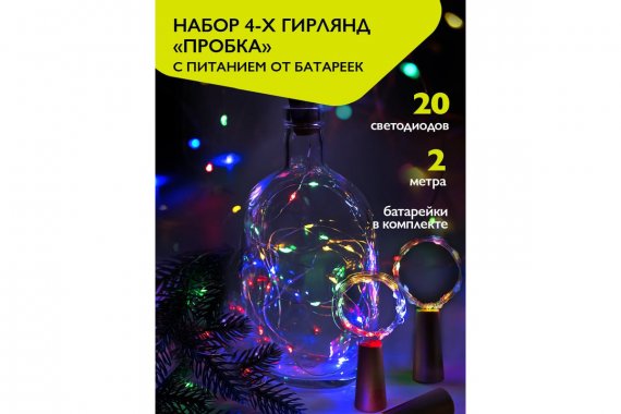 Гирлянды DC-G04-20MS4, комплект 4 шт., Пробки, мульт., 20 LED, 3xAG13
