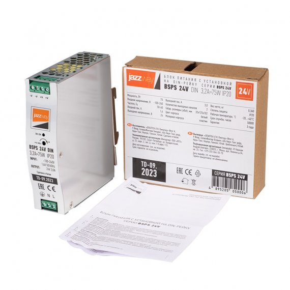 BSPS DIN 24V 3.2A= 75w IP20 AL 3г.гар Jazzway