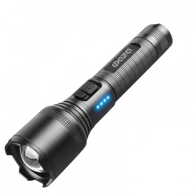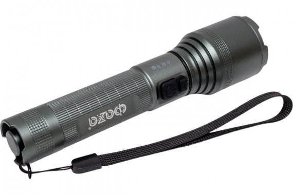 Аккумуляторный влагозащищенный фонарь с функцией ZOOM. Корпус из прочного анодированного алюминия. Возможность легкой замены аккумулятора. 2 прорезиненных переключателя режимов. Светодиодный индикатор заряда аккумулятора. 5 режимов работы:. -Яркий (800 Лм)