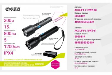 Артикул: Фонарь ФАZА AccuF1-L15WZ-ti (титан)