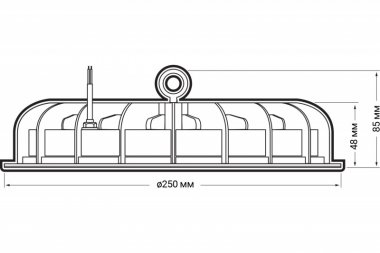 Светильники PHB UFO 03 комплектуются рым-болтом. Для троссового крепления рекомендуется использовать Кронштейн HB* для светильников PHB (универсальный), приобретается отдельно.