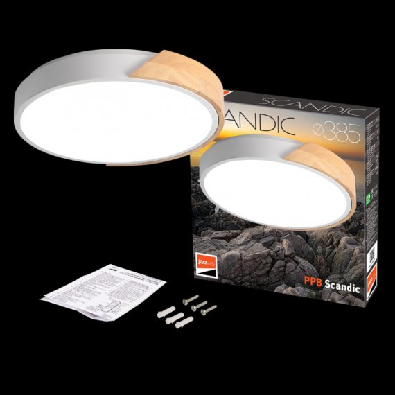 Светильник PPB Sсandic-R 36w 4000K WH/W с деревянной планкой IP20 D385*60 Jazzway