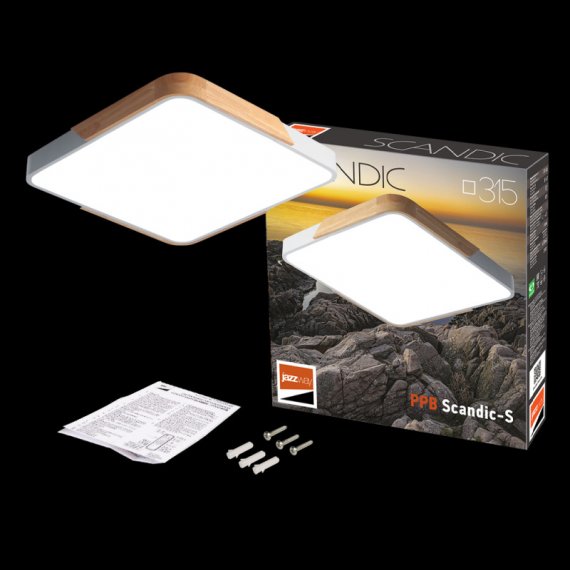 Светильник PPB Sсandic-S 24w 4000K WH/W с деревянной планкой IP20 315*315*55 Jazzway